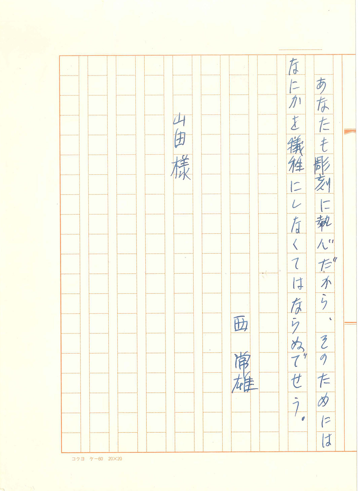 後日、先生からお手紙を頂きました。